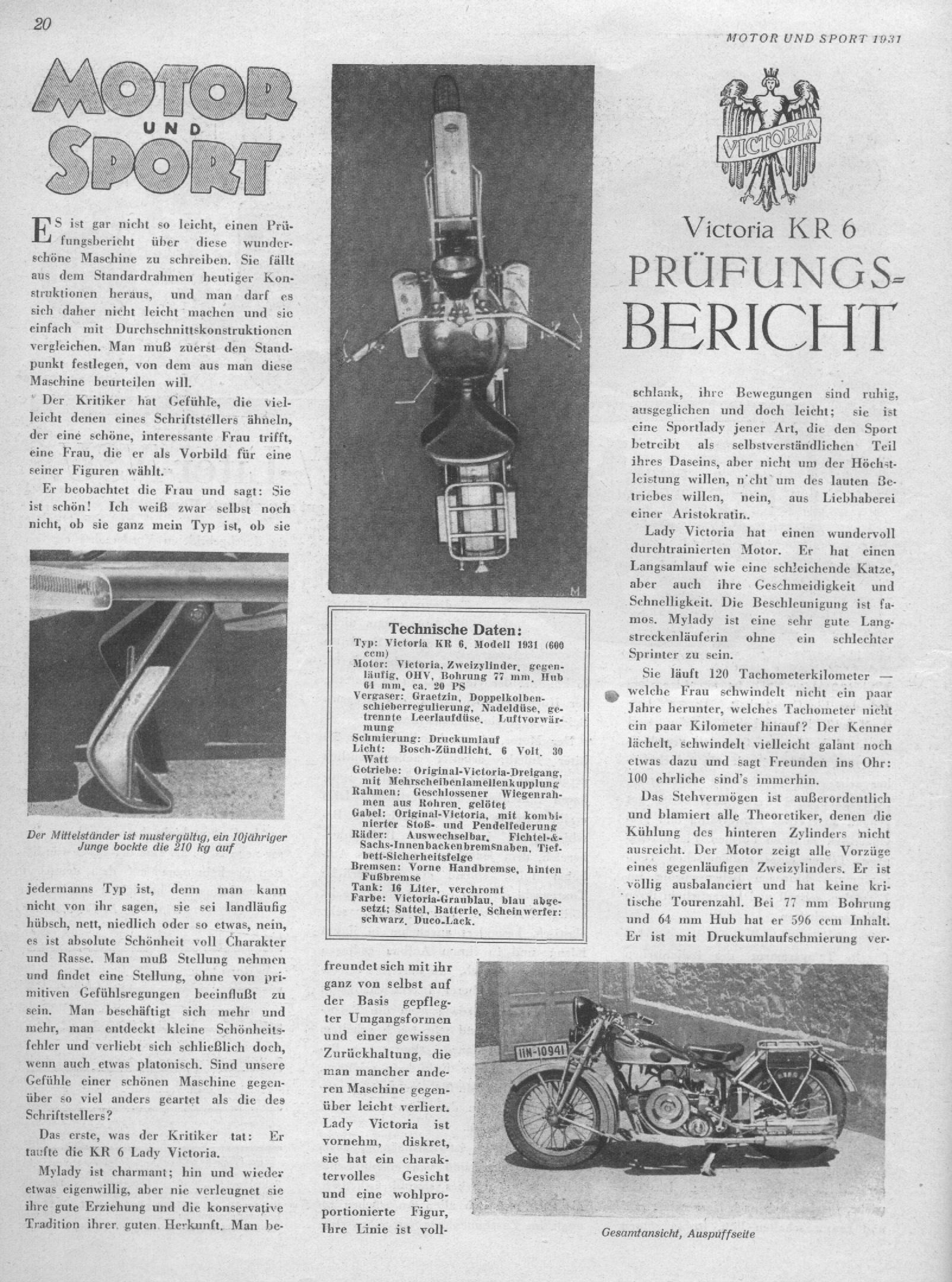 nachfolgend ein Prüfbericht zur Victoria KR 6 von 1931